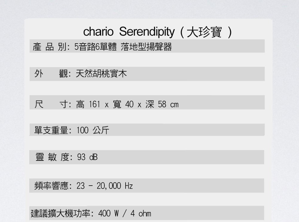義大利 chario SERENDIPITY 大珍寶 胡桃實木落地喇叭