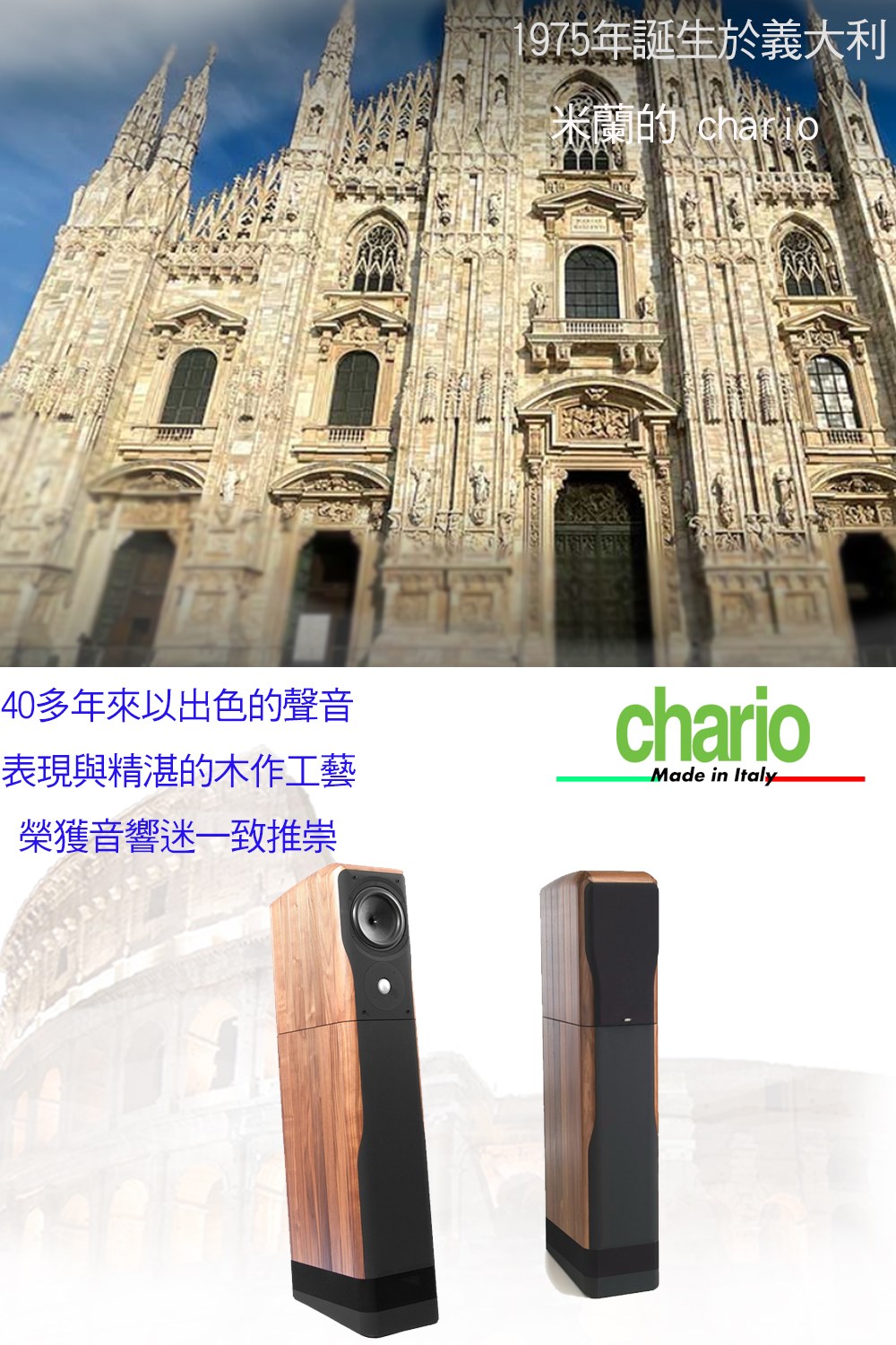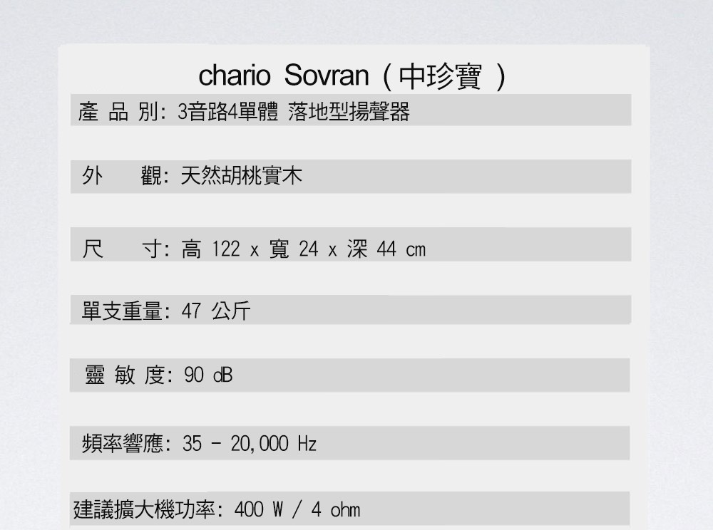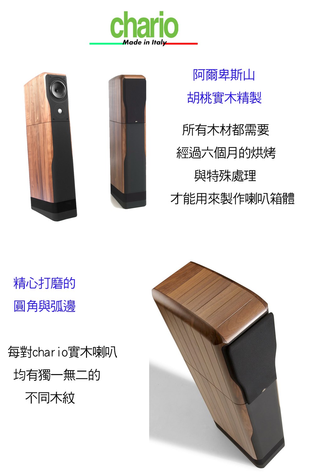 義大利chario SOVRAN 中珍寶 胡桃實木落地喇叭