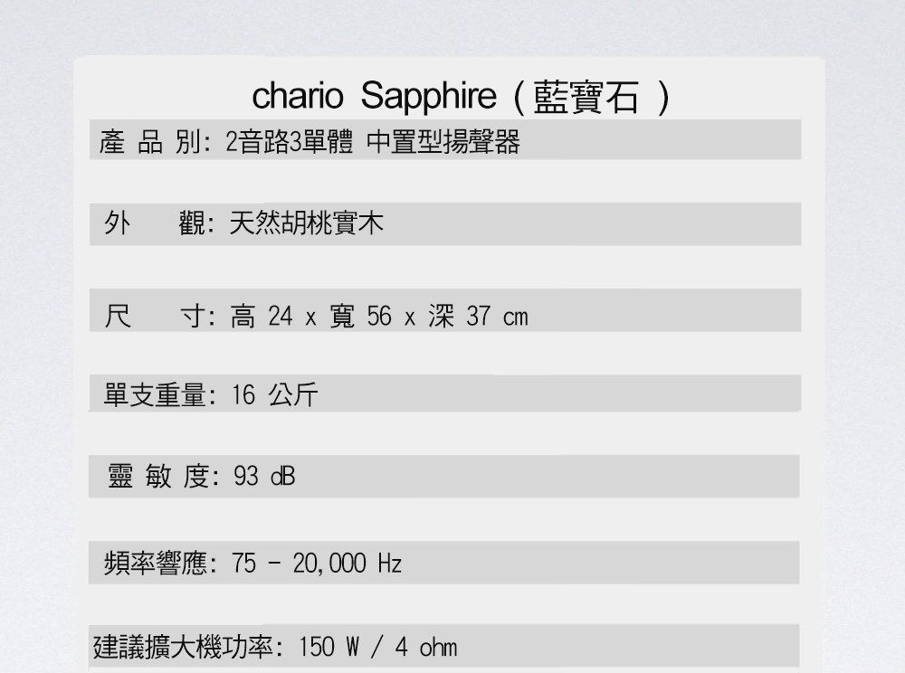 義大利 chario Sapphire 藍寶石 胡桃實木中置喇叭